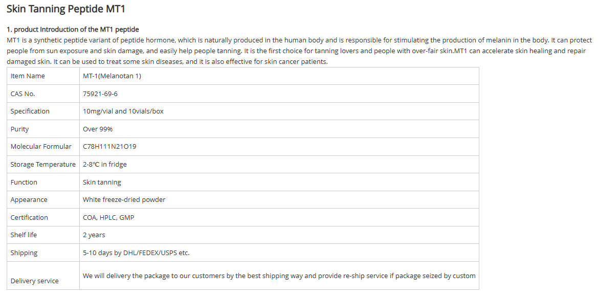 MT-1 works by mimicking the effects of a natural hormone in your body that stimulates melanin production. Melanotan 1 primarily increases the process of melanin production known as melanogenesis. It does this by binding to the melanocortin 1 receptor (MC1). This process reduces sun-damage to the skin exposed to ultraviolet rays and also creates beneficial effects on a broad range of skin-related illnesses.